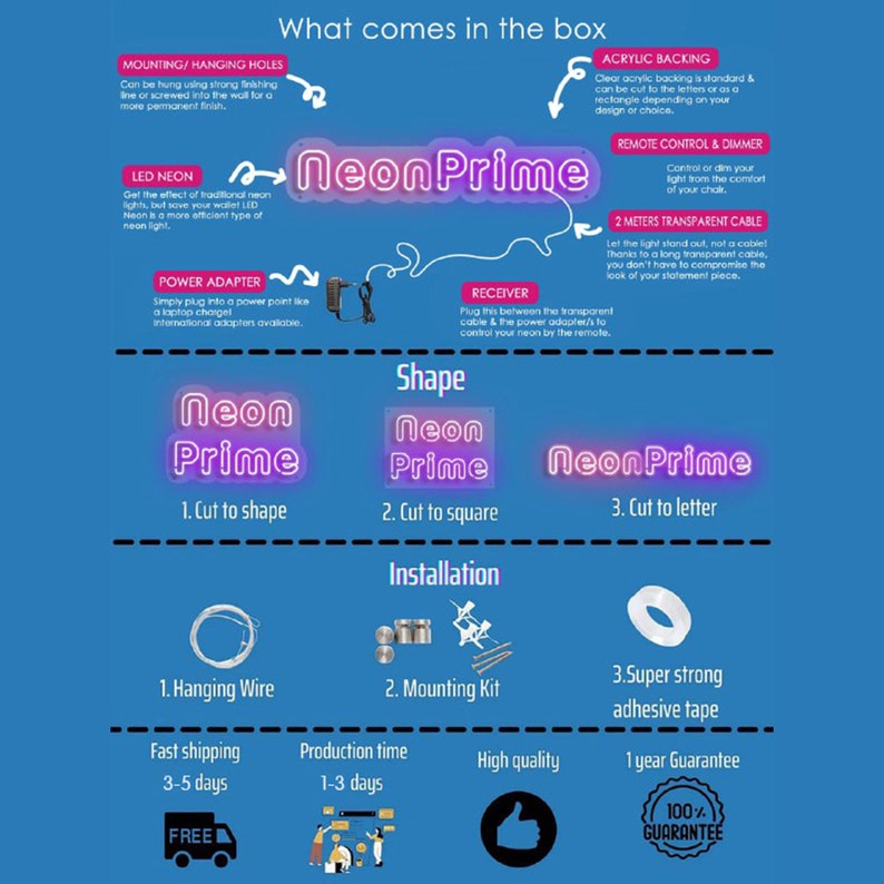 - Enseigne au néon personnalisée selon vos spécifications