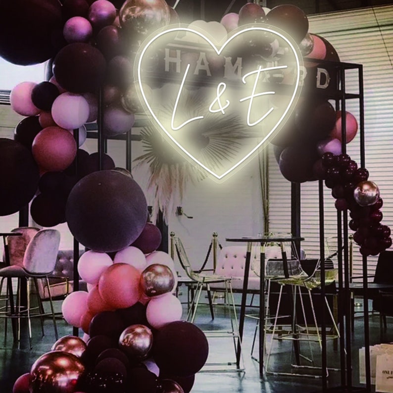 Enseigne LED néon en forme de coeur personnalisée pour mariage
