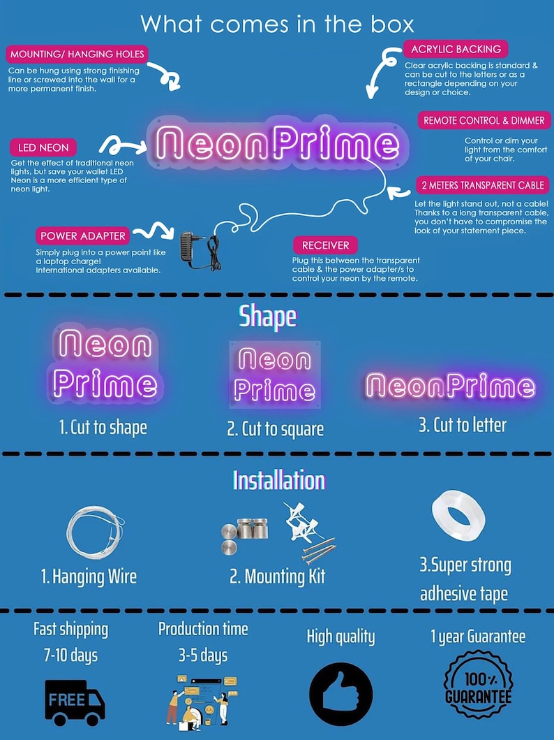 - Enseigne au néon personnalisée selon vos spécifications